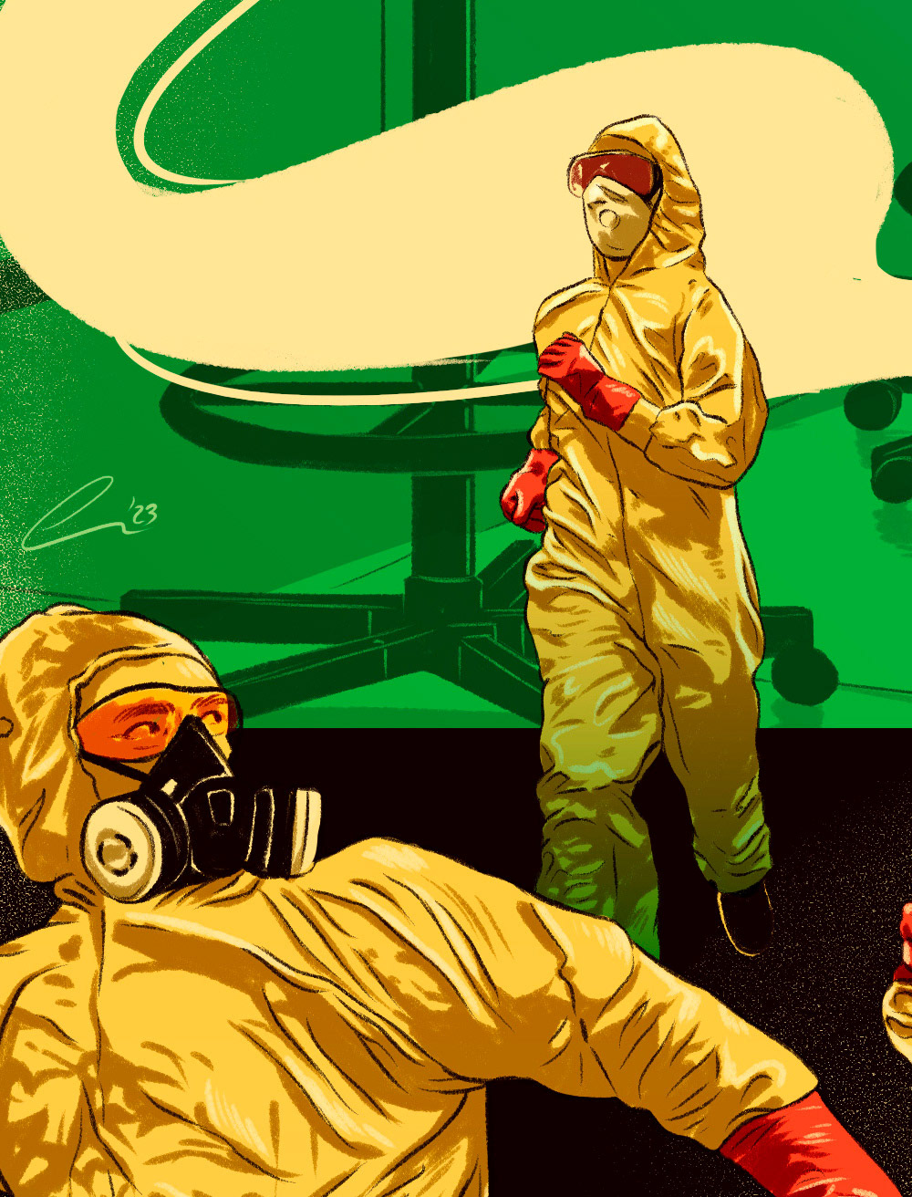 Illustration for The Spectator about the investigation on risky viruses.