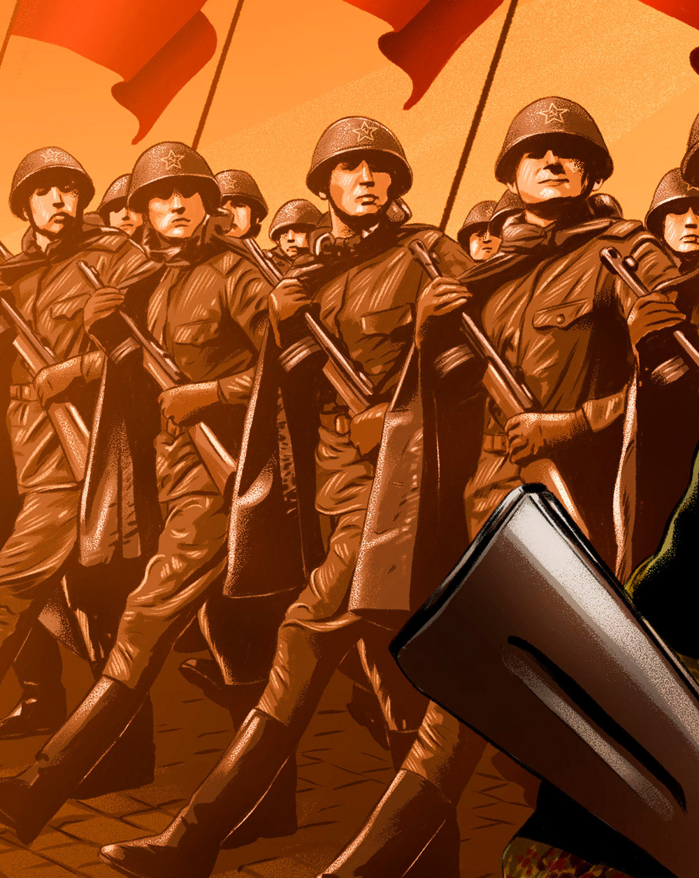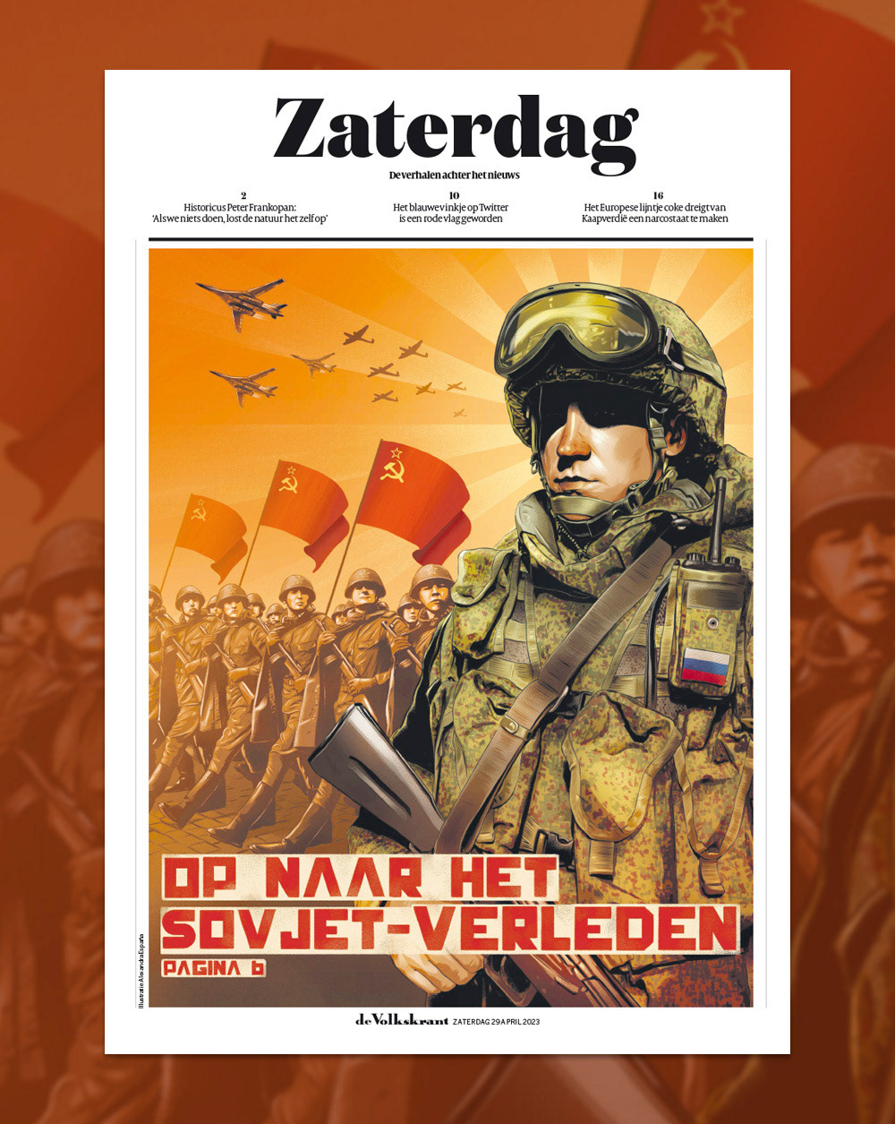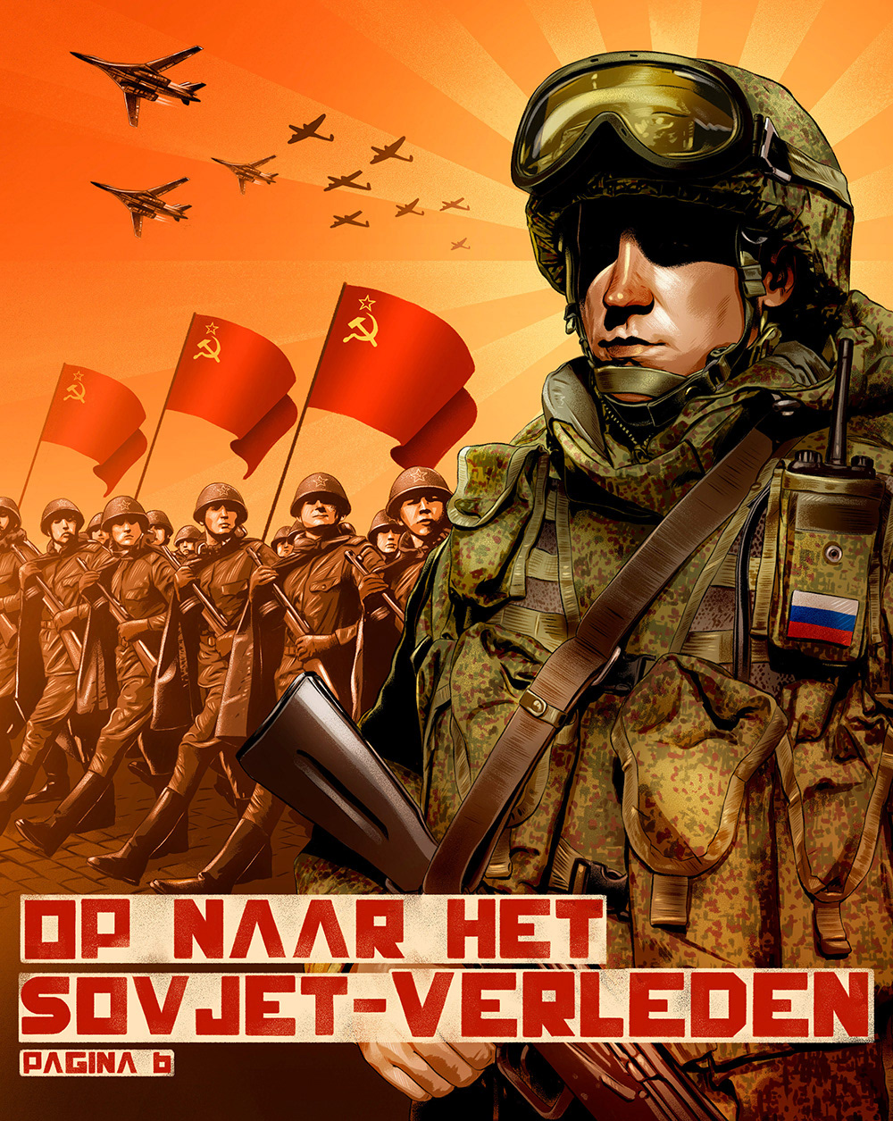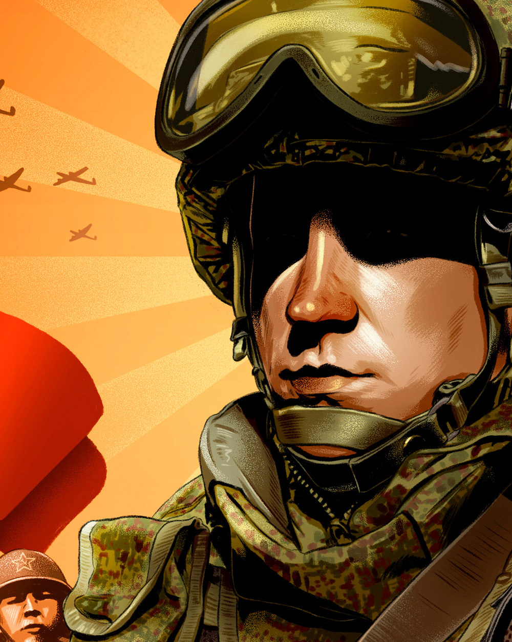 Opening illustration for a story about how some of the expressions of the Russian government and its posters are reminiscent of the USSR era.